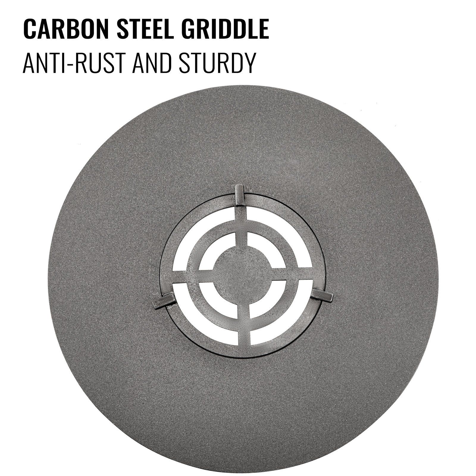 2.[PREMIUM CARBON STEEL]- Made of 45# carbon steel, these grill griddle inserts conduct heat faster and more even. They are also durable, sturdy, and have superior temperature control. These 1/4"" thick round grill grates are built to last for a long time. Moreover, after seasoning, it is smooth and anti-stick.