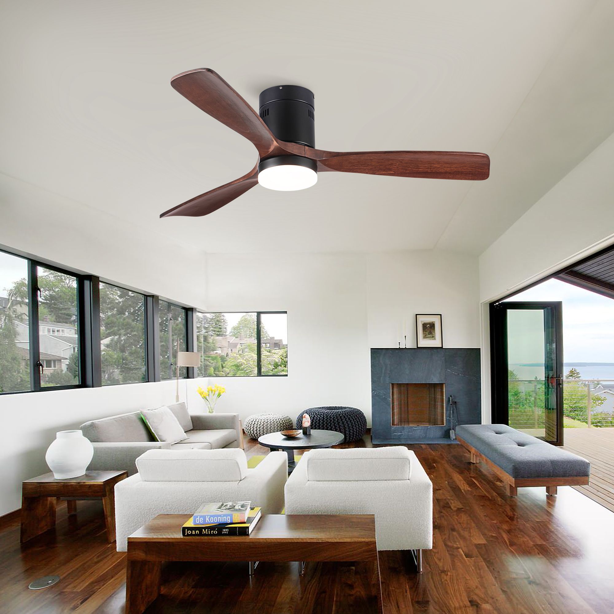 52 in Low Profile Dimmable Integrated Ceiling Fan with 3 Brown Solid Wood Blades