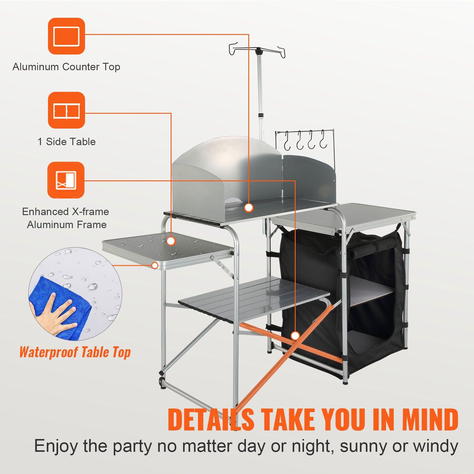 Home > Camping Kitchen Table, Folding Outdoor Cooking Table with Storage Carrying Bag, Aluminum Cook Station 1 Cupboard & Detachable Windscreen