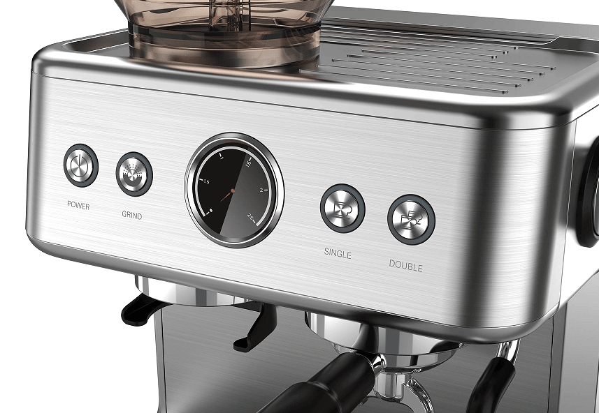 SKU: PSCM7060 coffee grinding machine. 20Bar extraction cappuccino / American Italian espresso, 1 cup / 2 cups mechanical button + instrument number, 2300W, steam type, powder hammer 58mm, 30 level grinding setting