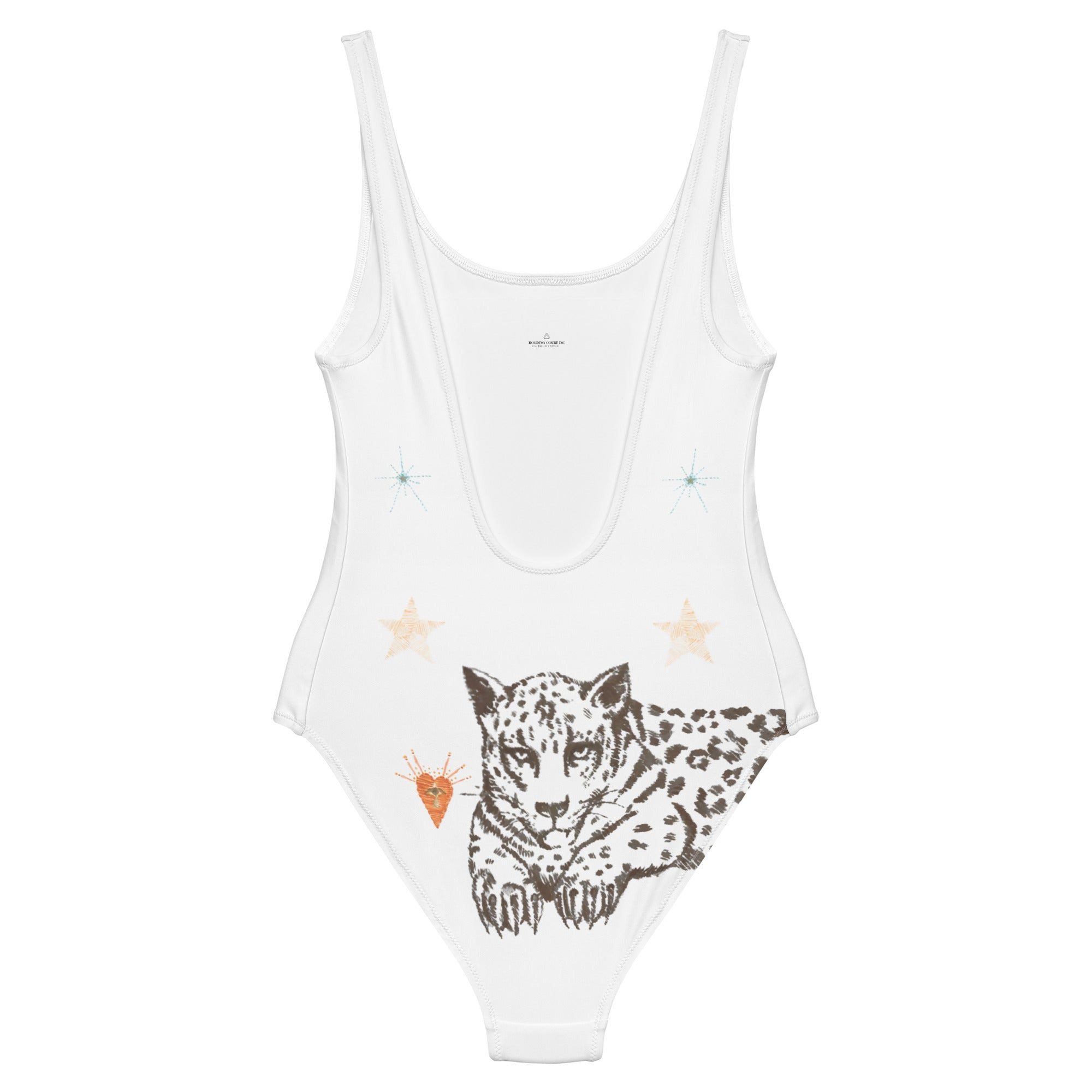 Introducing the elegant Lyra One Piece Swimsuit in White Jaguar, hand crafted to bring elegance and enchantment to your day. Sun and swim carefree knowing you helped give new life to this reusable fiber. Made from 100% recycled bottles and printed with eco friendly inks, the Vega Bikini takes it one step further with sustainability. Made-to-order in Mexico City, your new recycled bikini will take at tops ten days to get to your doorstep. So grab your place in line to get ahead. We're proud to bring you high-quality, eco-friendly clothing made to last. Holding Court Inc creates top-quality apparel using certified organic materials made in line with slow fashion methods. We're committed to eliminating waste by making all of our products to order, and planting trees for every order purchased, keeping our environmental impact to a minimum.As a small, female-owned business, every purchase you make at Holding Court Inc by Courtney Barriger supports an independent, sustainable brand and artists. So you can feel good knowing where your hard-earned dollars are going.• 82% Recycled Polyester, 18% Spandex• Fabric weight: 6.78 oz/yd² (230 g/m²), weight may vary by 5%• Chlorine-resistant fabric• Cheeky fit with a scoop neckline and a low scoop back• Zig-zag stitching• Double-layer front • Four-way stretch material stretches and recovers on the cross and lengthwise grains Size guide CHEST (inches) WAIST (inches) HIPS (inches) XS 33 ⅛ 25 ¼ 35 ⅜ S 34 ⅝ 26 ¾ 37 M 36 ¼ 28 ⅜ 38 ⅝ L 37 ¾ 29 ⅞ 40 ⅛ XL 41 33 ⅛ 43 ¼ 2XL 44 ⅛ 36 ¼ 46 ½ 3XL 47 ¼ 39 ⅜ 49 ⅝