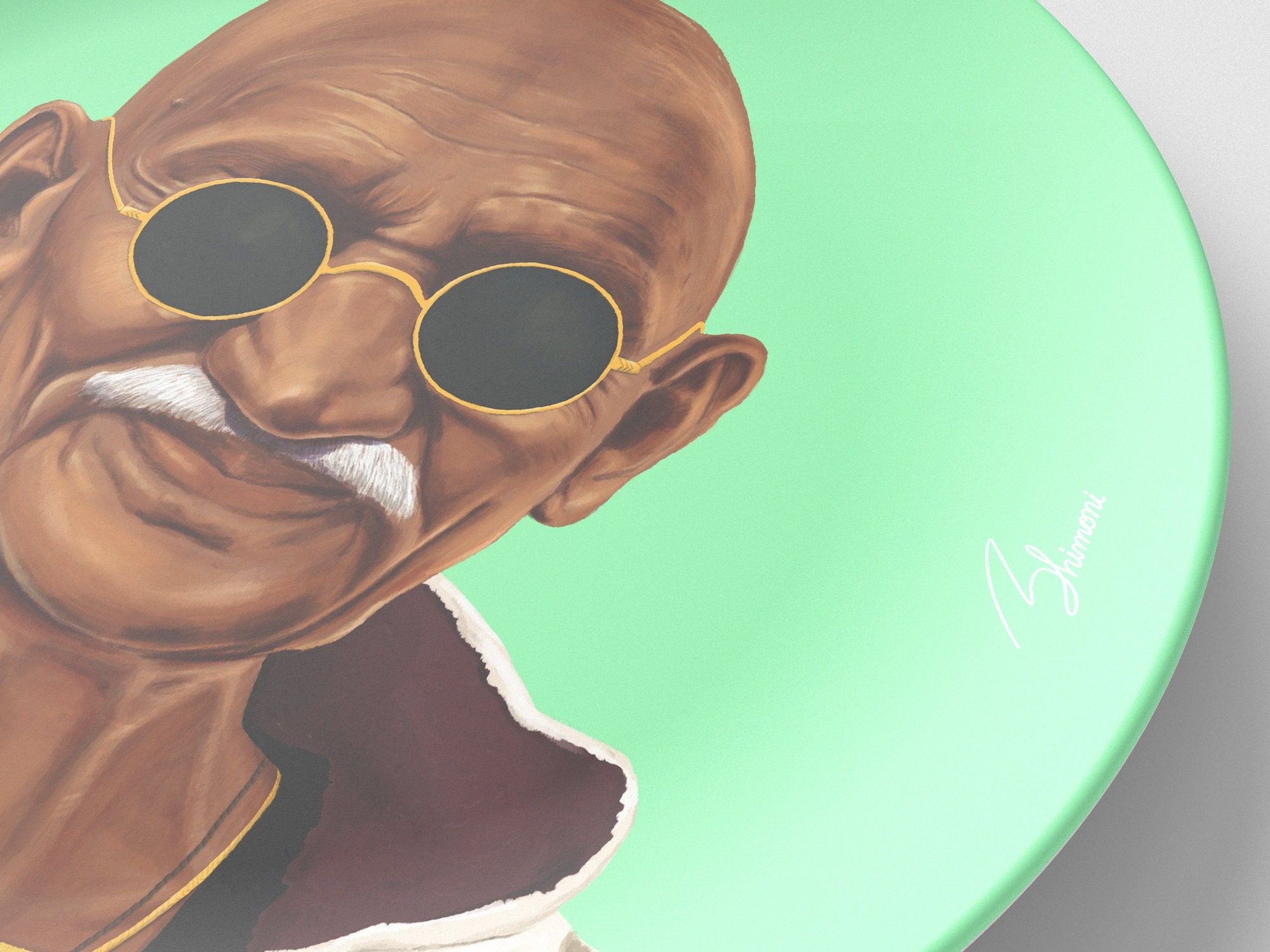 "You must be the change you wish to see in the world."Mahatma GandhiThis unique 10" DecoWare® plate pays a colorful tribute to Mahatma Gandhi, meshing his historic peaceful demeanor with a splash of contemporary artistry. Perfect for collectors, history buffs, or as a statement piece that commands thoughtful conversation. P R O D U C T D E T A I L S // 10" Round Dinner Plate, 0.75" Tall// Microwave safe// Oven-safe up to 250 degrees Fahrenheit for 1 hour// Dishwasher-safe// Molded from DecoWare® - a high performance medical-grade polymer// Safe for food contact// Contains no melamine, BPA's, formaldehyde or other harmful chemicals// Recyclable// 100% Made in the U.S.A.// Durable satin finish// Unbreakable with normal use  F I N E P R I N T Due to the many variations in monitors, the actual colors on each plate and platter may appear slightly different than the colors that appear on your monitor. They are awesome in real life!Each unique Plate is made to order. S H I P P I N G T I M E S Please allow 5-7 business days for your package to arrive via USPS. If your order has not arrived by the 7th business day, please contact us so we can resolve the issue. Most orders arrive to our customers within 3-7 days of placing the order, but we are unable to guarantee this fast delivery due to production and shipping times that are outside of our control. R E T U R N S & R E F U N D S Returns and exchanges are accepted within 14 days of delivery. If there are any problems with your order, please feel free to message me and I will help any way possible. W E L O V E O U R C U S T O M E R S Thank you so much for browsing our listings, don't hesitate to message with any questions or concerns. We strive to please you!