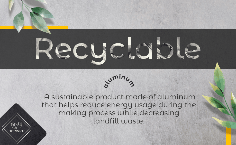 ECO-FRIENDLY. A sustainable product made of recycled aluminum that helps reduce energy usage during the making process while decreasing landfill waste.