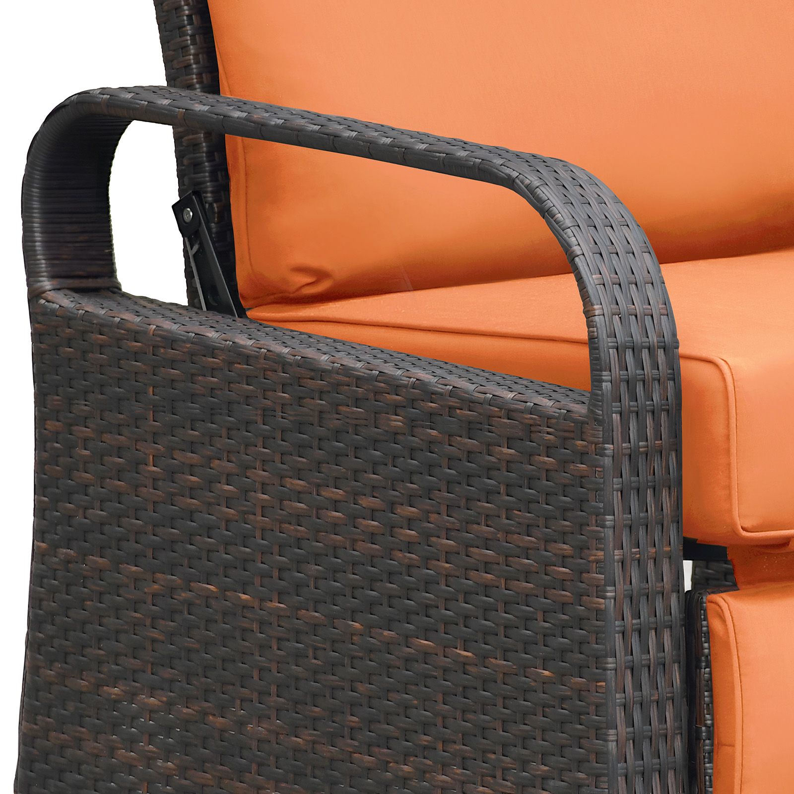 3.Wicker Recliner Chair is made from anti-rust aluminum frame wrapped in brown high quality resin wicker; the anti-rust durable aluminum frame ensures durability and supports up to 350lbs.