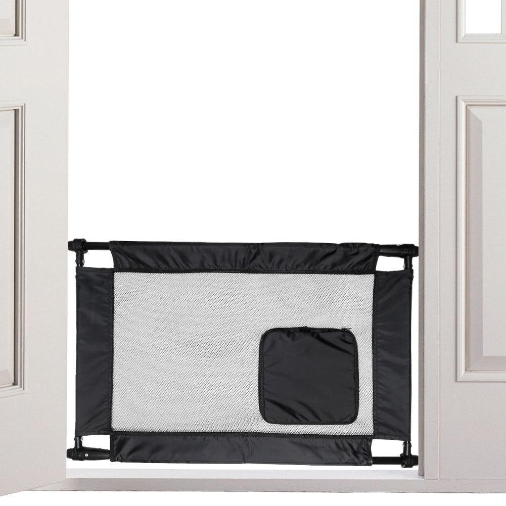The Pet Life Porta-Gate travel collapsible and adjustable folding dog and cat Gate is the perfect solution for those whom want an easy-to-install and expandable pet gate solution that'll work for various door opening lengths and for those who prefer the non-bulkier and heavier gates commonly available. This unique pet gate easily collapses and rolls up and takes up very little storage space. Both sided poles easily extend and grip onto any door posts or any openings. Simply twist the polls and watch the gate automatically extend and adjust to the proper width settings. When installing always make sure the rubberized grips properly grip the sided surfaces. Features a mesh zippered and polyester entrance door that simply zips open and closed for passage and safety. Short enough to step or walk over and tall enough to prevent smaller dogs and cats from passing through. Both sides of the adjustable poles feature tough rubberized grips that tightly connect to any door sidings or openings from drywall to metal, the poles themselves are composed of heavy duty metal and built-to-last and hold. User must make sure the metal poles are tightly fastened. Available in Multiple Colors.