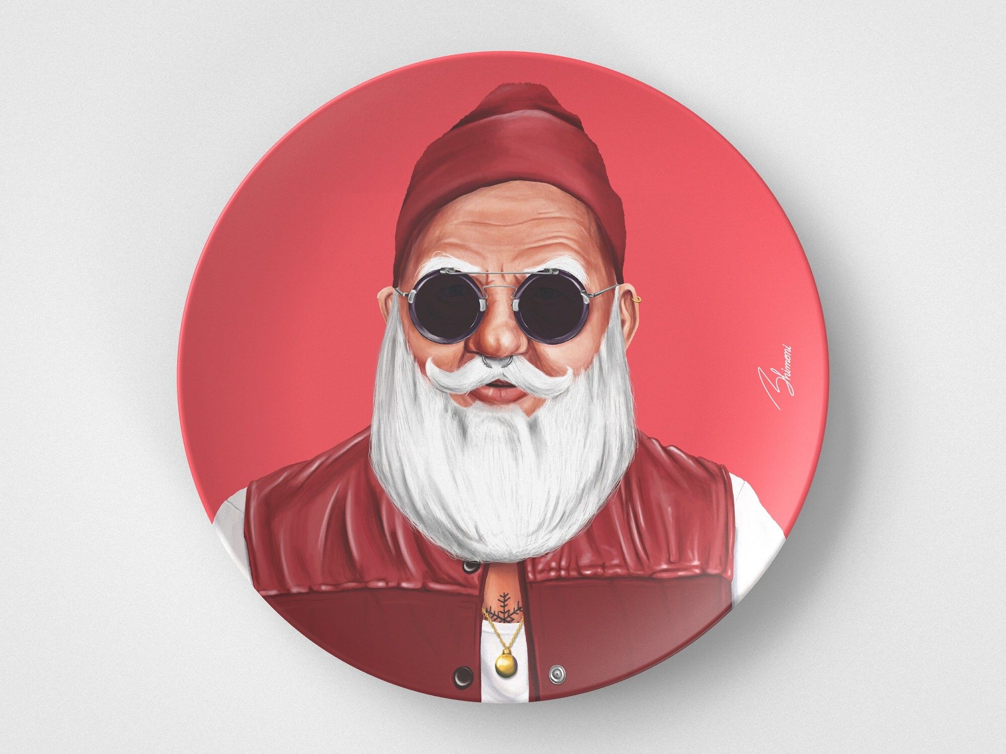 This unique 10" DecoWare® plate captures the festive spirit of Santa Claus with a twist. Donning contemporary round sunglasses and a stylish vest, this Santa merges the classic with the modern, making it an exceptional addition to any holiday decor collection. P R O D U C T D E T A I L S // 10" Round Dinner Plate, 0.75" Tall// Microwave safe// Oven-safe up to 250 degrees Fahrenheit for 1 hour// Dishwasher-safe// Molded from DecoWare® - a high performance medical-grade polymer// Safe for food contact// Contains no melamine, BPA's, formaldehyde or other harmful chemicals// Recyclable// 100% Made in the U.S.A.// Durable satin finish// Unbreakable with normal use  F I N E P R I N T Due to the many variations in monitors, the actual colors on each plate and platter may appear slightly different than the colors that appear on your monitor. They are awesome in real life!Each unique Plate is made to order. S H I P P I N G T I M E S Please allow 5-7 business days for your package to arrive via USPS. If your order has not arrived by the 7th business day, please contact us so we can resolve the issue. Most orders arrive to our customers within 3-7 days of placing the order, but we are unable to guarantee this fast delivery due to production and shipping times that are outside of our control. R E T U R N S & R E F U N D S Returns and exchanges are accepted within 14 days of delivery. If there are any problems with your order, please feel free to message me and I will help any way possible. W E L O V E O U R C U S T O M E R S Thank you so much for browsing our listings, don't hesitate to message with any questions or concerns. We strive to please you!