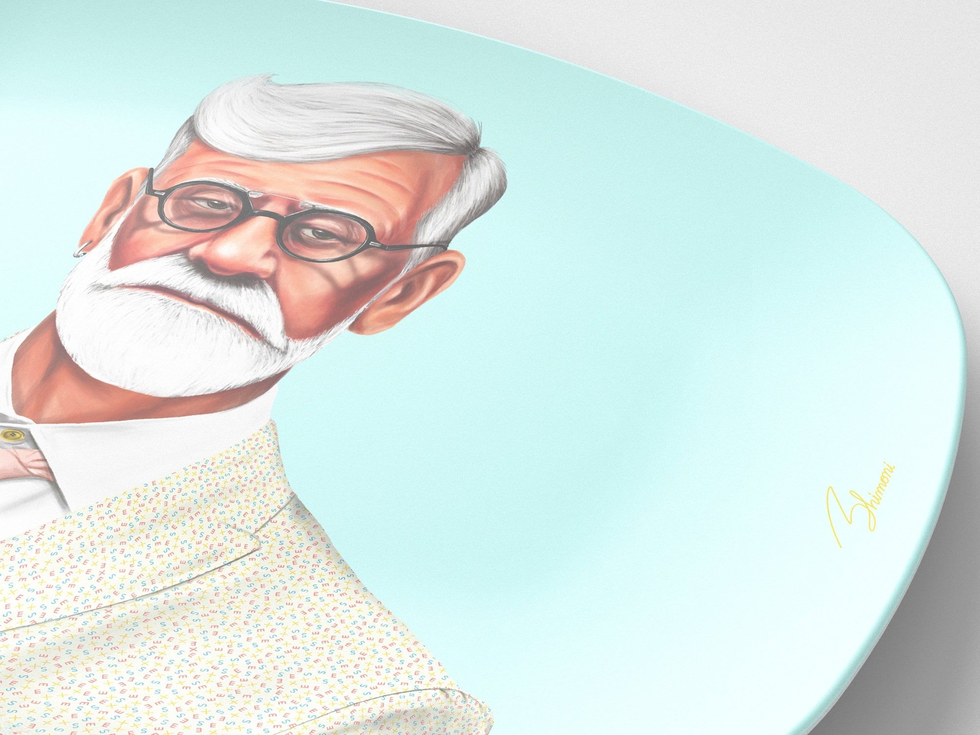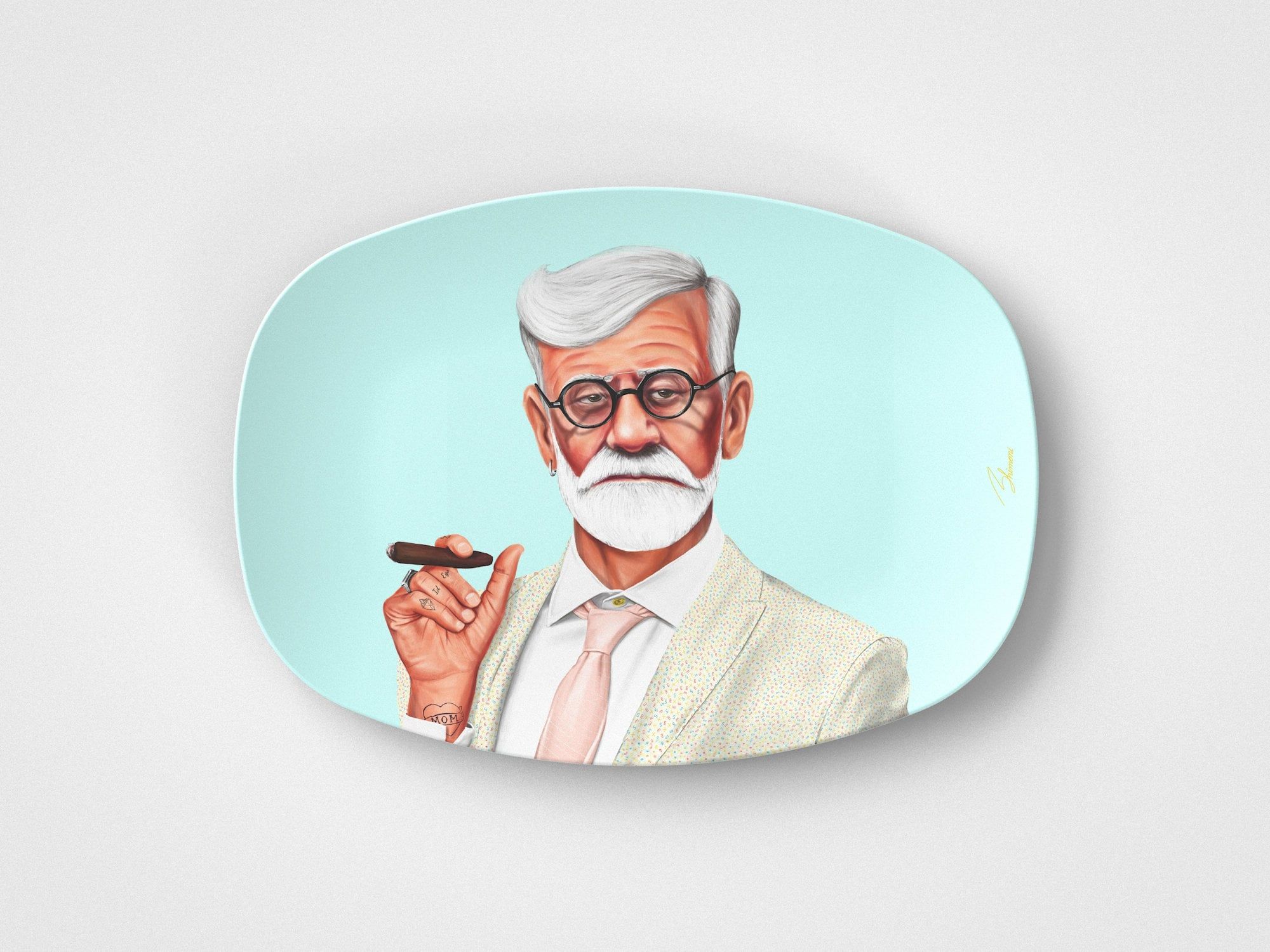 "Out of your vulnerabilities will come your strength."Sigmund FreudThis unique 10"x14" DecoWare® platter presents a reimagined Sigmund Freud, the father of psychoanalysis. With a modern hairdo, tattoos, and a casual pose with a cigar, this plate adds a whimsical touch to the intellectual legacy of Freud. P R O D U C T D E T A I L S // 10"x14" Oval Serving Platter, 0.75" Tall// Microwave safe// Oven-safe up to 250 degrees Fahrenheit for 1 hour// Dishwasher-safe// Molded from DecoWare® - a high performance medical-grade polymer// Safe for food contact// Contains no melamine, BPA's, formaldehyde or other harmful chemicals// Recyclable// 100% Made in the U.S.A.// Durable satin finish// Unbreakable with normal use  F I N E P R I N T Due to the many variations in monitors, the actual colors on each plate and platter may appear slightly different than the colors that appear on your monitor. They are awesome in real life!Each unique Platter is made to order. R E T U R N S & R E F U N D S Returns and exchanges are accepted within 14 days of delivery. If there are any problems with your order, please feel free to message me and I will help any way possible. W E L O V E O U R C U S T O M E R S Thank you so much for browsing our listings, don't hesitate to message with any questions or concerns. We strive to please you!