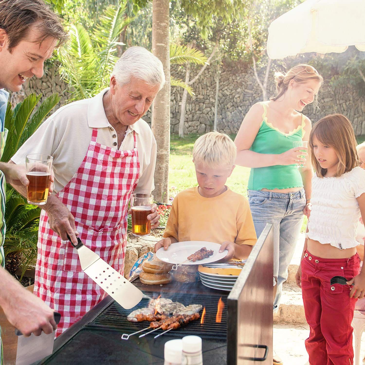 4.The elongated, heat-resistant plastic handle keeps your hand away from the hot grill.